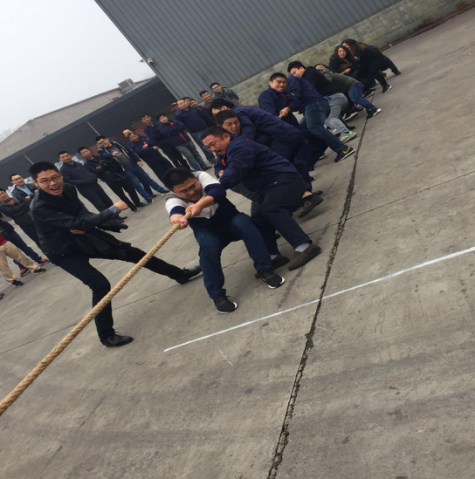 弥漫着轻纱似的薄雾,但这些都不影响我们对拔河的热情,员工们按照规定时间都纷纷来